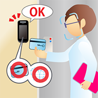 ◎非接触認証が可能な顔認証リーダーFE-500の導入シーン